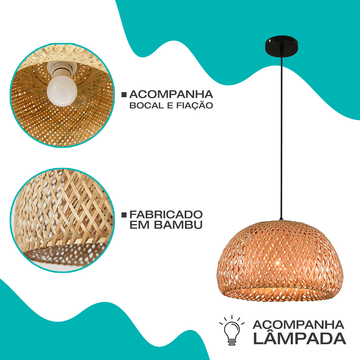 Ideal para ambientes como salas, cozinhas, restaurantes, varandas, lojas e pousadas, ele cria uma atmosfera acolhedora e convidativa. A lâmpada LED 9W branca quente inclusa proporciona uma iluminação suave, ideal para espaços com proposta intimista.