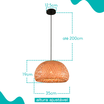Lustre Pendente Rústico 35cm - Modelo Malibu Mini